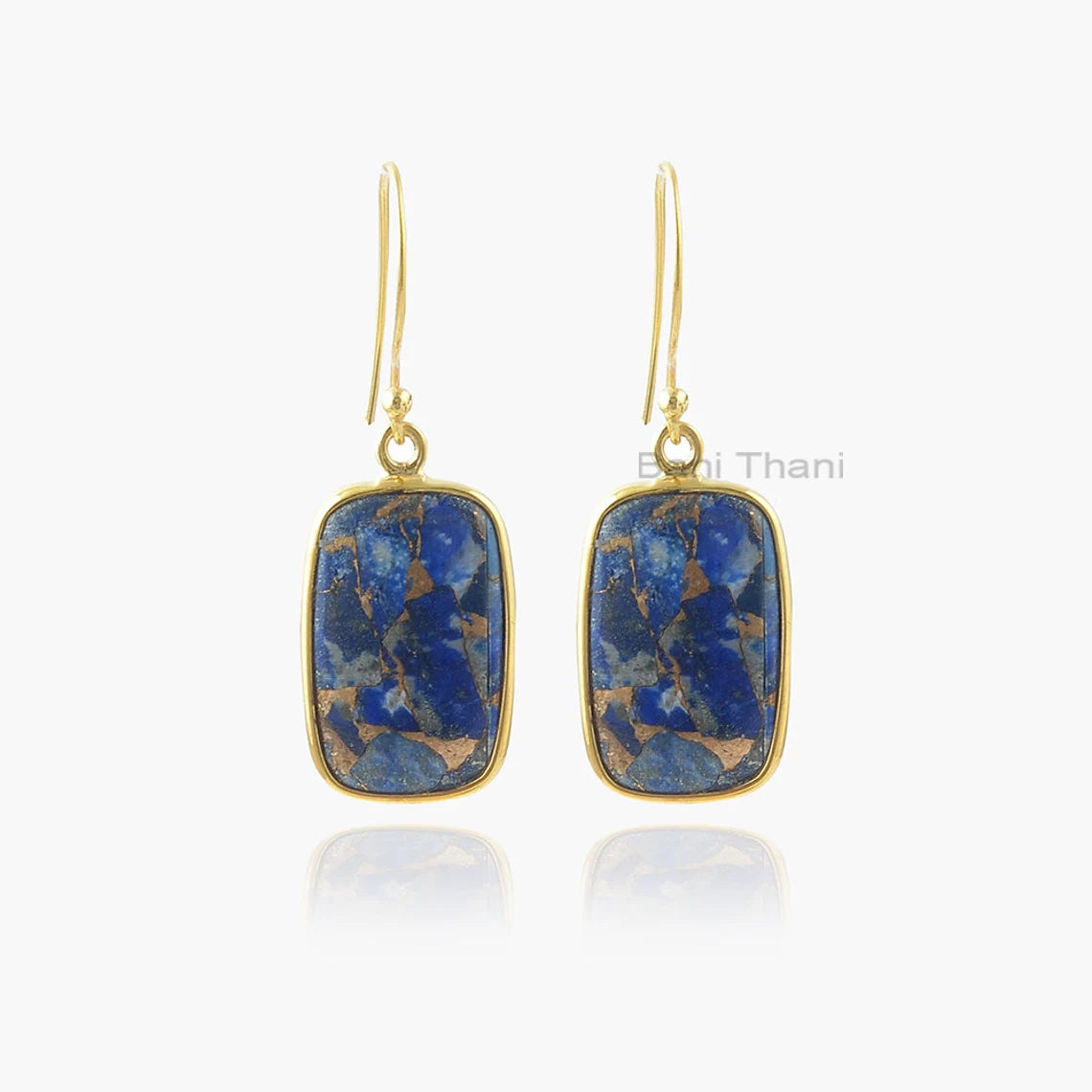 Lapis Lazuli Earrings-Copper Lapis Lazuli 14x20mm Cushion Gemstone Earrings-Sterling Silver Earrings-Drop Gemstone Earrings-Gift for Wife