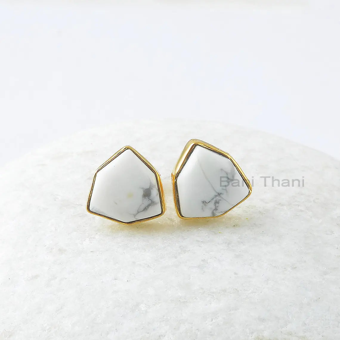 White Howlite Stud Earrings - Handcrafted Studs - Pure Silver - 10mm Trillion Hexagon - Gemstone Jewelry - Jewelry For Wife - Gift For Yoga