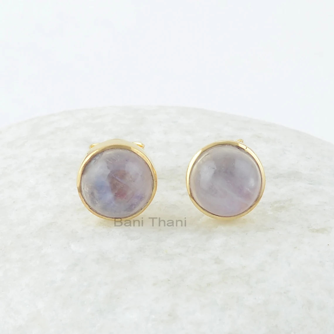 Rainbow Moonstone Stud Earrings, Rainbow Moonstone 8 mm Round Gemstone Earrings, 18k Gold Plated,925 Silver Stud Earrings,Earrings For Women
