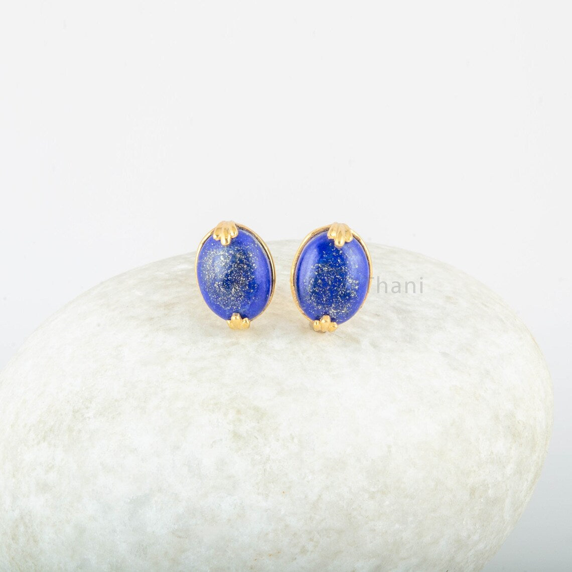 Lapis Lazuli Stud Earrings - 925 Pure Silver Gold Plated Handmade Studs - 10x12mm Oval - Fashion Jewelry - Gift For Women - Bridesmaid Gift