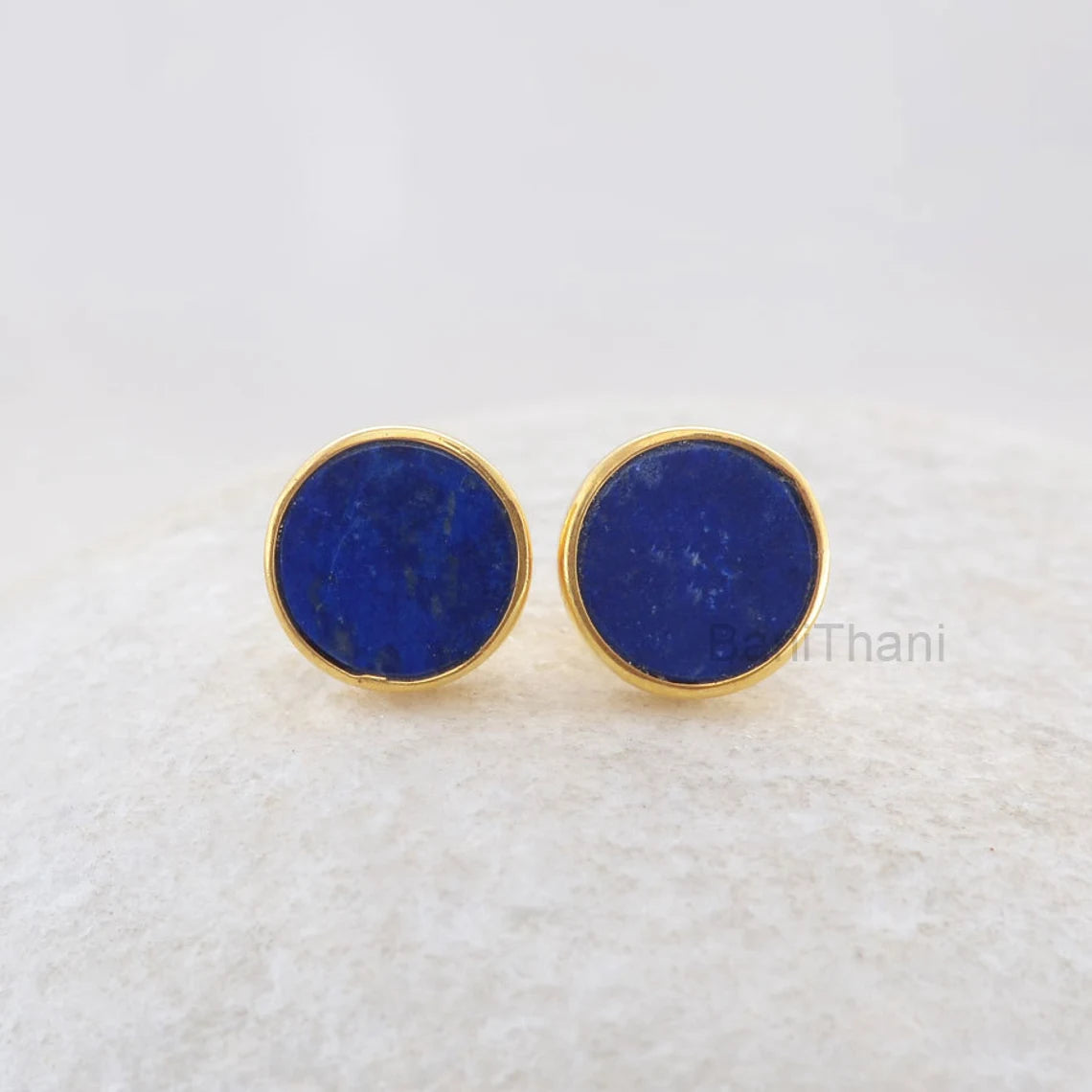 Lapis Lazuli Stud Earrings - 925 Pure Silver - Handcrafted Studs - 9mm Flat Round - Fashion Jewelry - Gift For Old Women - Jewelry For Lady