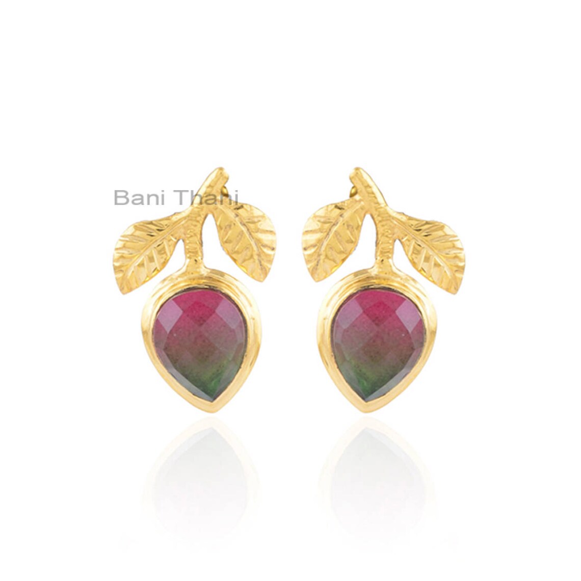 Tourmaline Earrings-Bio Tourmaline Quartz Pear 8x10mm Sterling Silver Earrings-18k Gold Plated Earrings-Stud Earrings-Gemstone Earrings