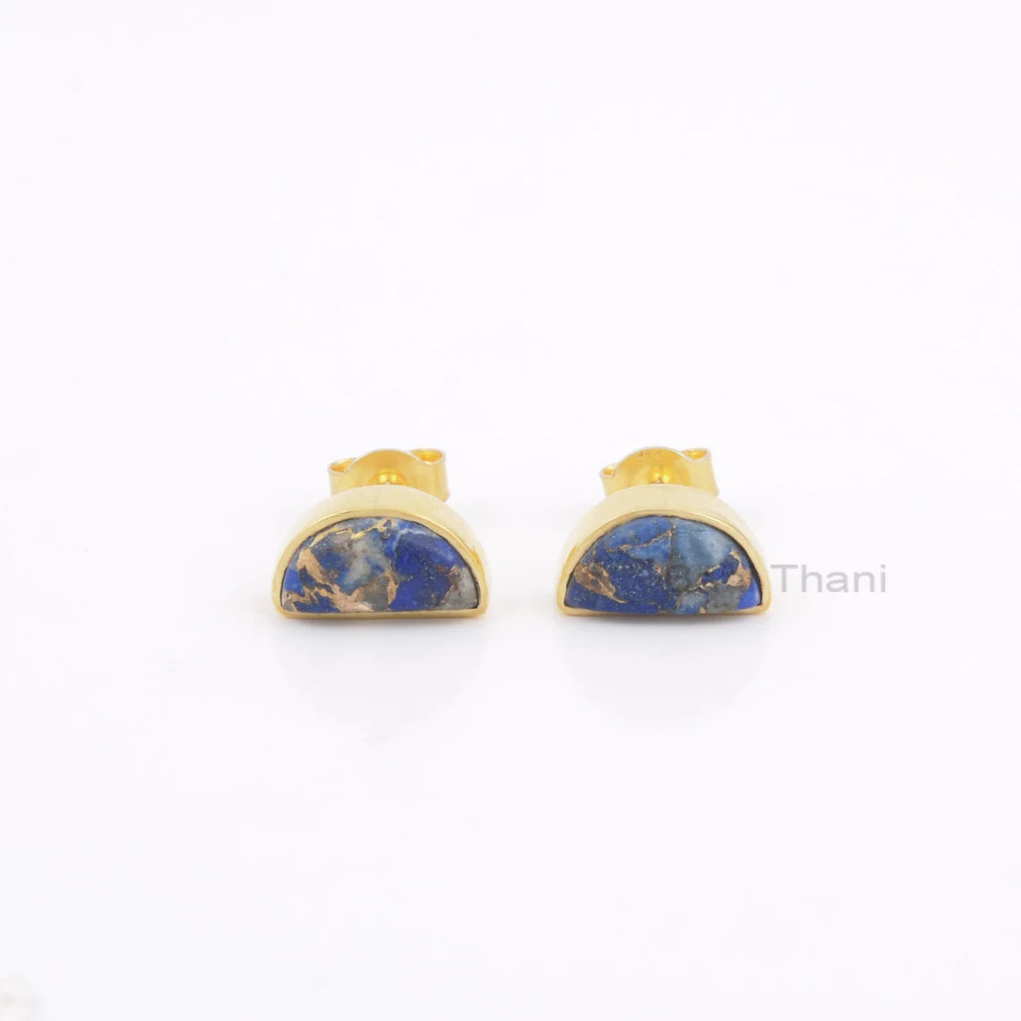 Delicate Earrings - Copper Lapis Earrings - Gemstone Stud Earrings - Halfmoon Earrings - Solid Silver - Gold Plated Earring - Gift for Her