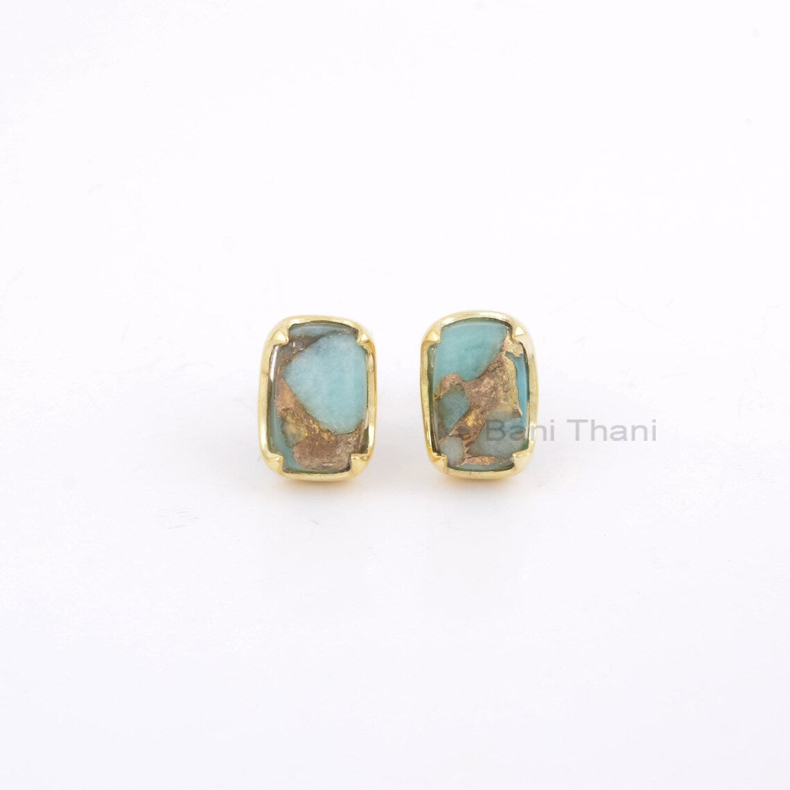 Cushion Copper Amazonite 7x11mm Gemstone Stud Earrings, Prong Set Earring, 925 Silver Stud Earrings, Minimalist Gift Earrings, Moms Earring