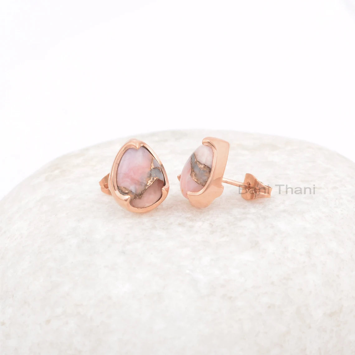 Pink Opal Copper Earring - Gemstone Stud Earrings - 925 Silver Earring - Stud Earring - Earrings for Women - Delicate Earrings - 8x11mm Pear