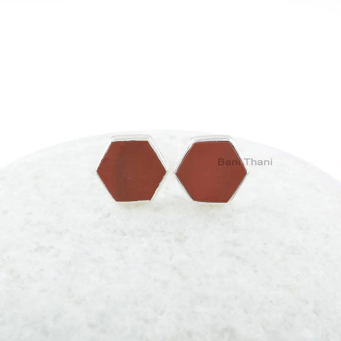 Red Jasper Earrings-Red Jasper Hexagon 9x9mm Sterling Silver Earrings-Jasper Earrings-Gemstone Earrings-Handmade Jewelry-Gift For Women