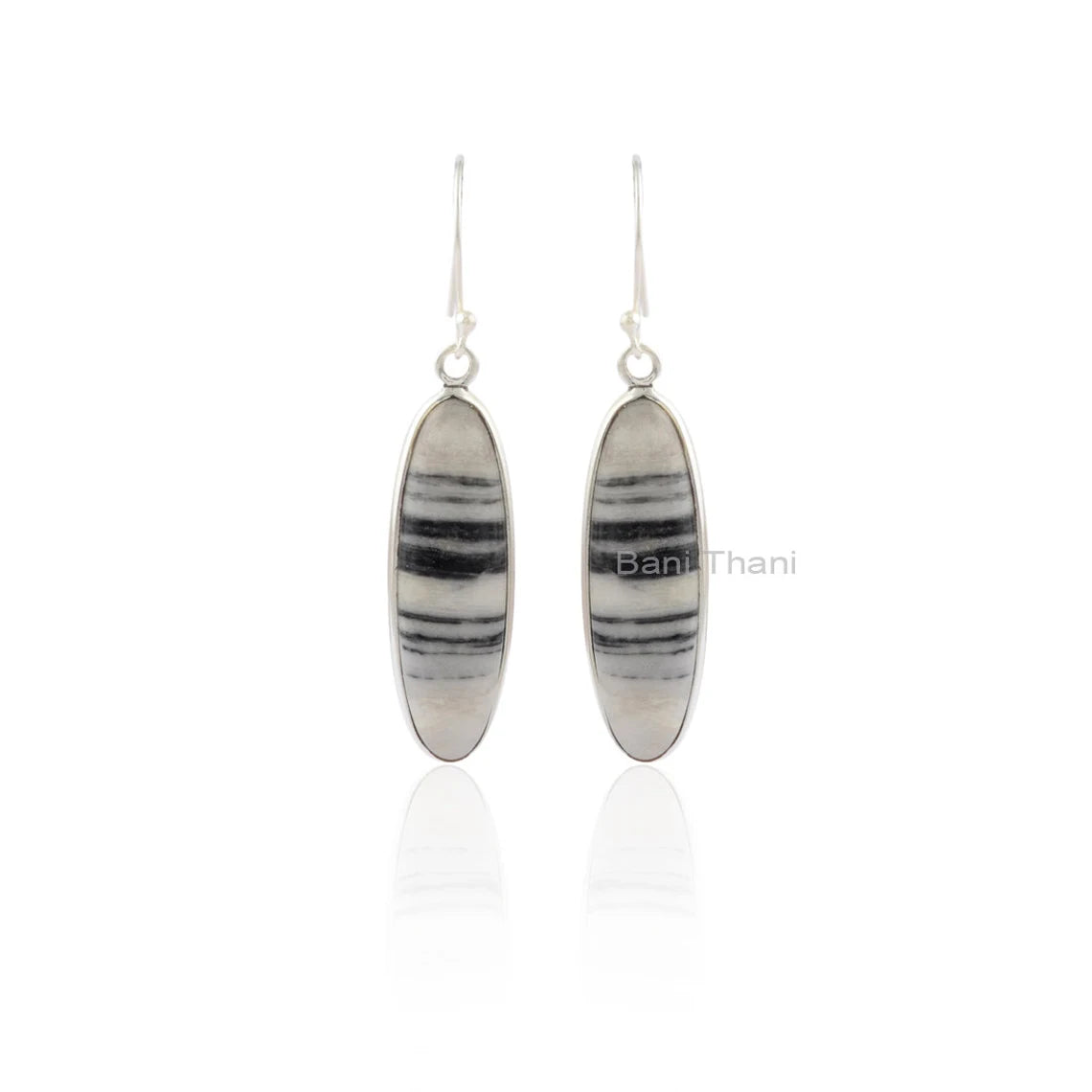 Silver Earrings Dangle-Sterling Silver Drop Earrings,Zebra Jasper Earring, Long Earrings,Oval Cut Dangle Earring,Handmade Christmas Gift
