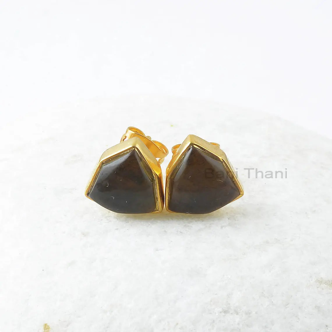 Smoky Quartz 10mm Trillion Hexagon Gemstone Stud Earrings, Stud Earrings, Bridesmaid Gift Earring, 925 Sterling Silver Gold Plated Earrings
