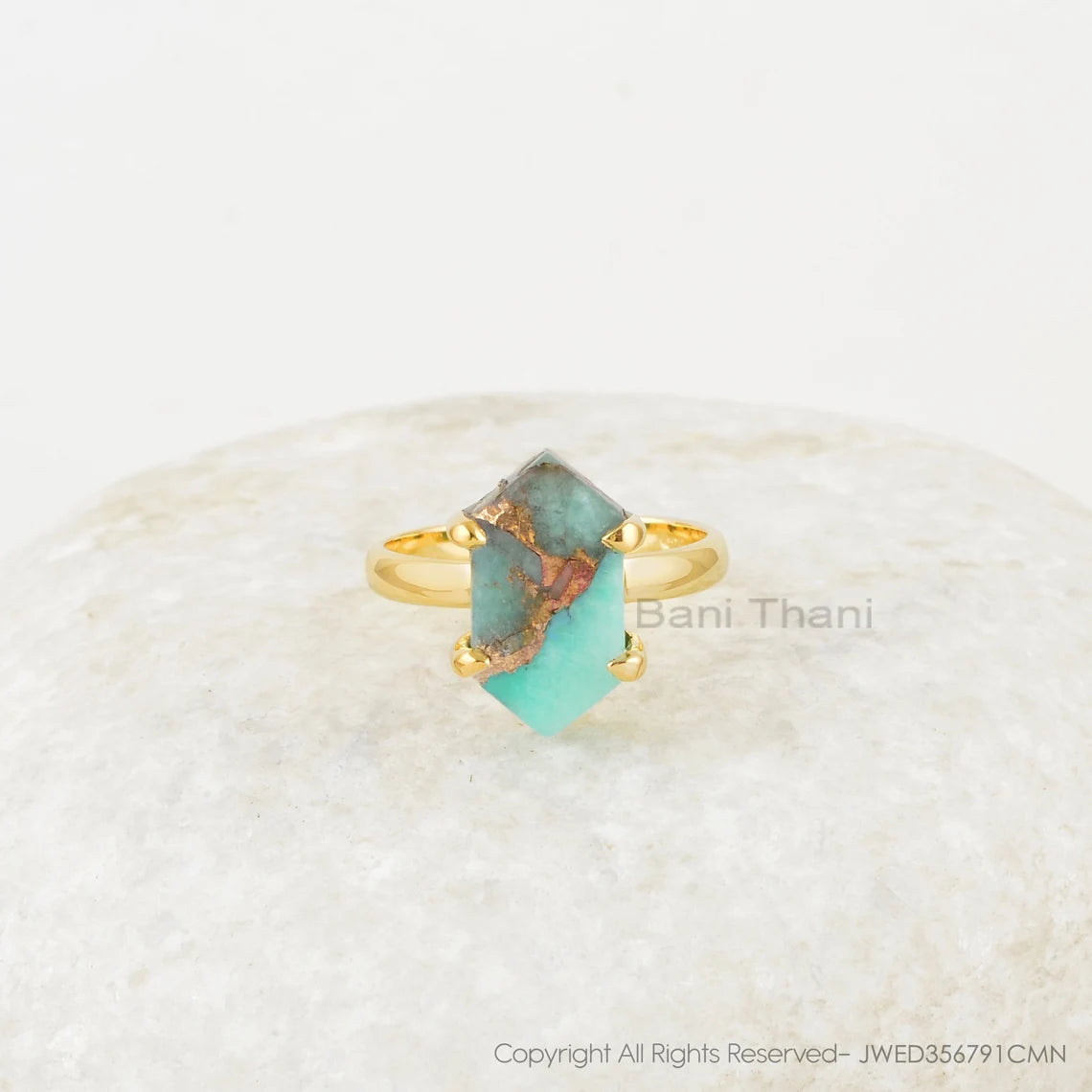 Amazonite Ring - 925 Silver - Handmade Ring - 8x15mm Hexagon - Gold Plated Ring - Fashion Jewelry - Gift For Besties - Jewelry For Sister