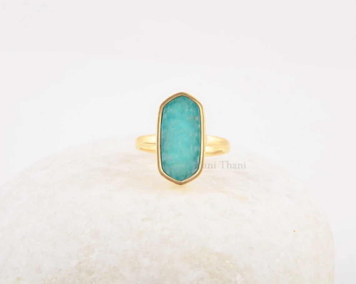 Amazonite Ring - Gemstone Rings - Silver Handmade Ring - Gold Plated Ring - Gift for nurse - Jewelry for Healing - Hexagon Stone Jewelry