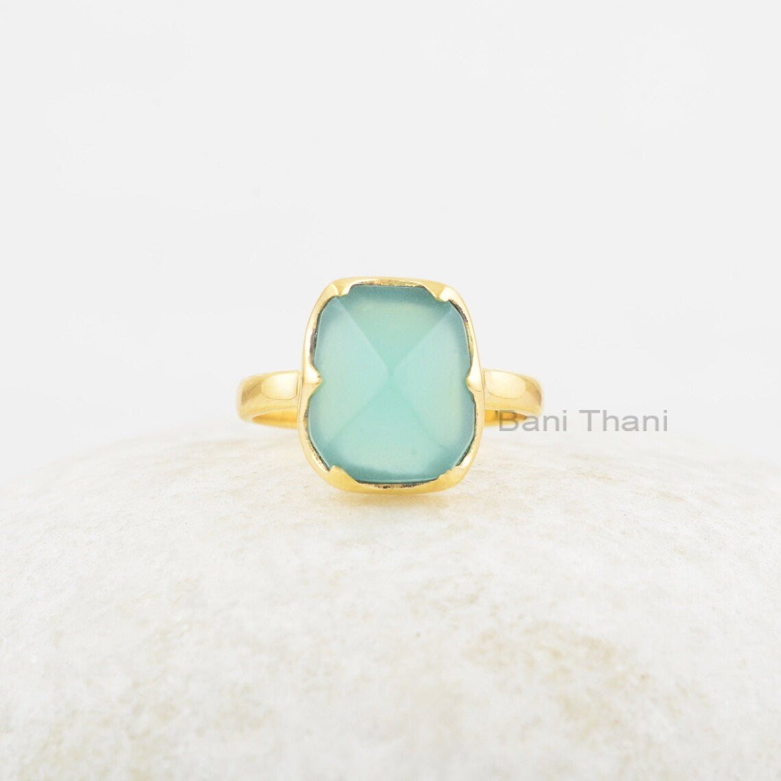 Aqua Chalcedony Gemstone Ring - 9x12mm Pyramid Ring - 925 Silver Ring - Gold Plated Ring - Handmade Jewelry - Gift for Her - Womens Ring