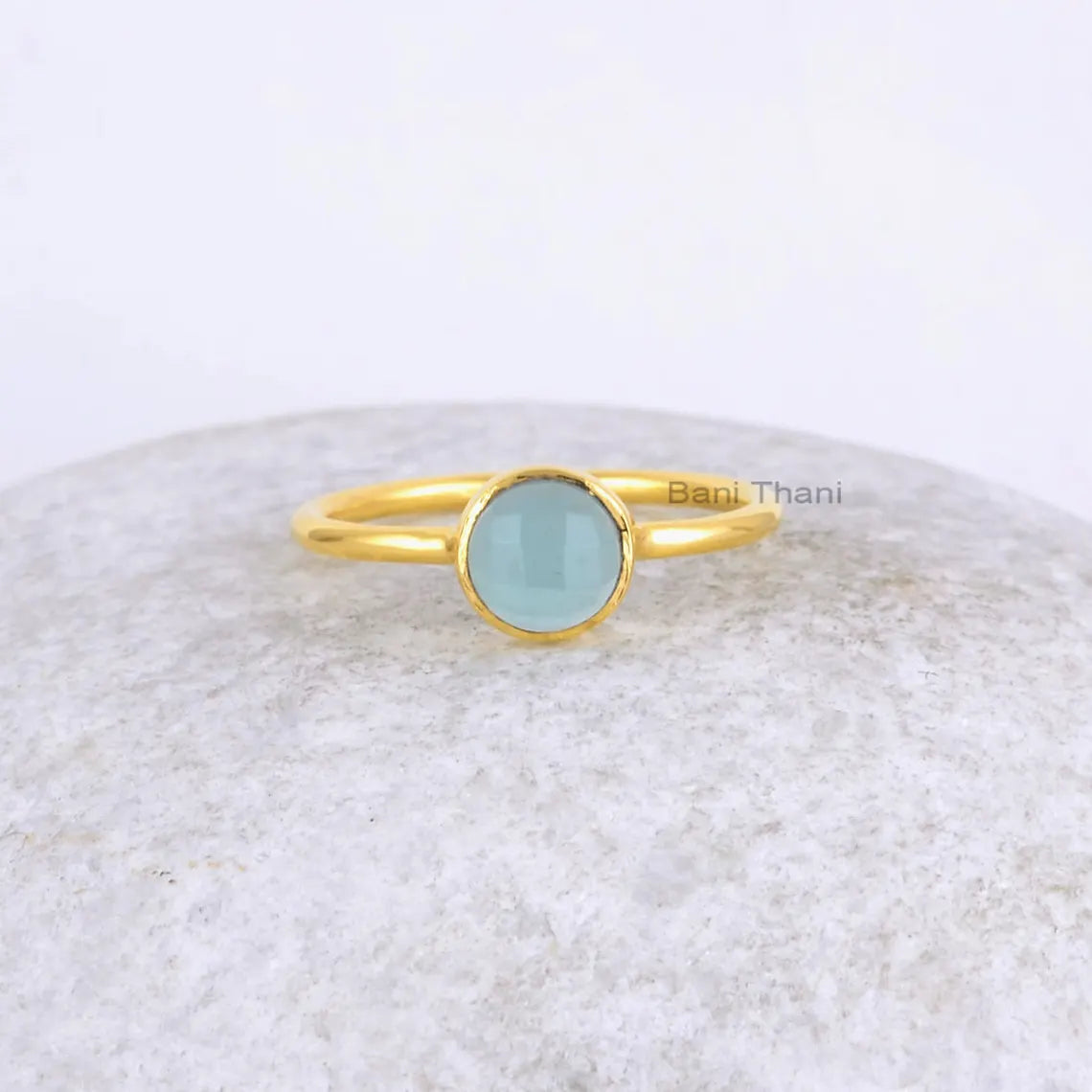 Aqua Chalcedony Ring - 6mm Round Gemstone - 925 Sterling Silver Ring - Gold Plated Ring - Gift for Her - Anniversary Gift Ring - Dainty Ring