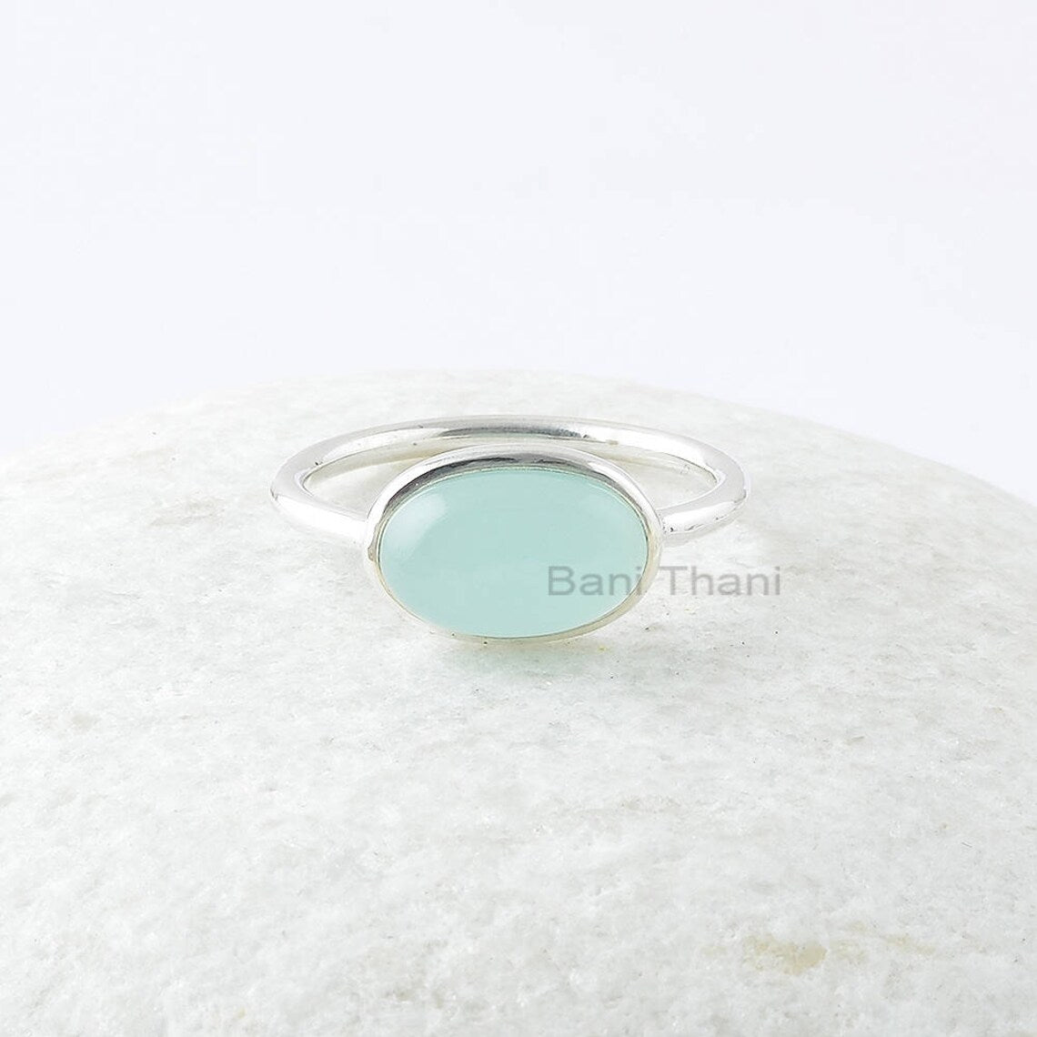 Aqua Chalcedony Ring, Aqua Chalcedony 7x11mm Oval Gemstone Sterling Silver Ring, Gemstone Ring, Women Jewelry, Gift For Bridesmaid