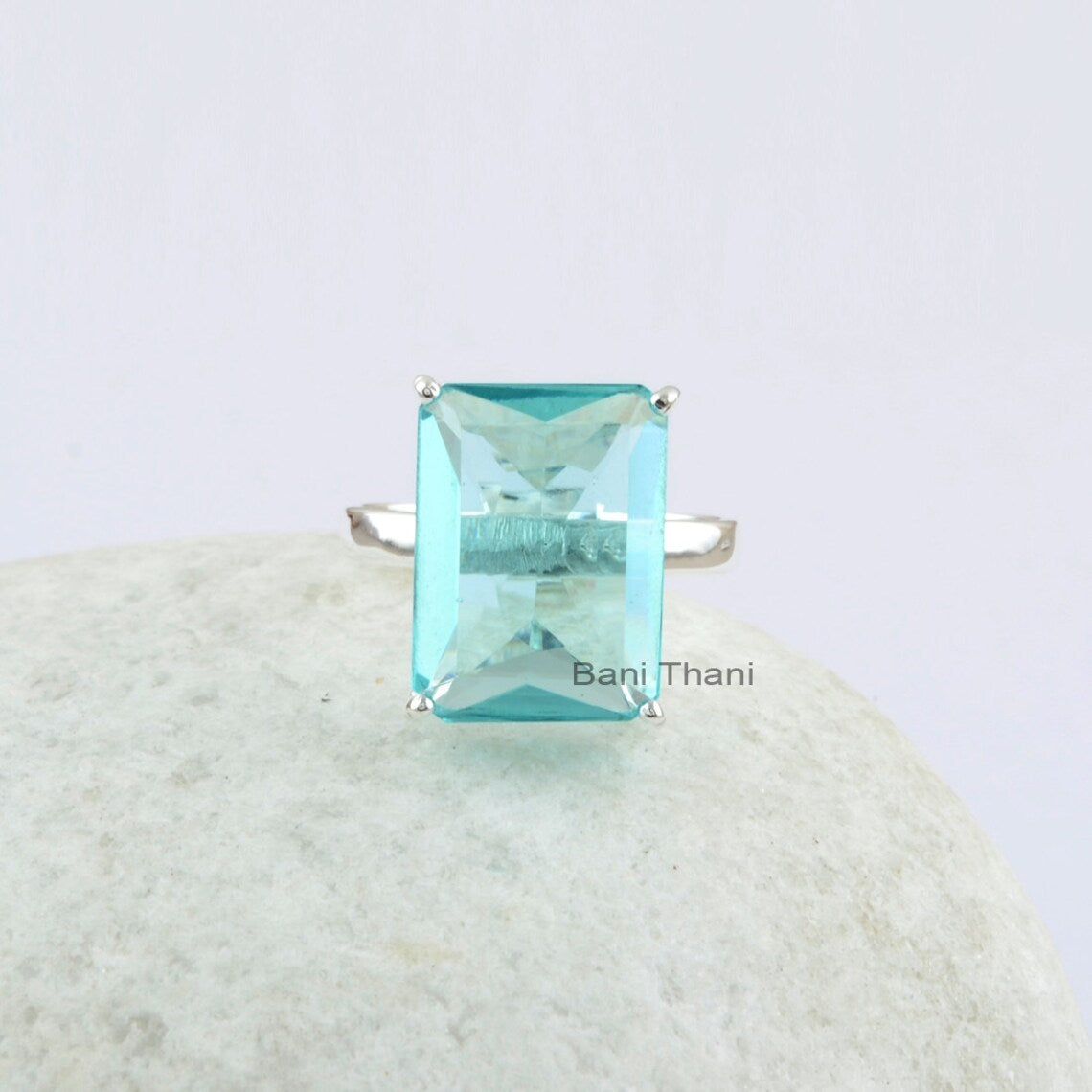 Aqua Quartz Ring - 925 Silver - Handmade Ring - Faceted Rectangle Gemstone - Semi Precious Jewelry - Jewelry For Graduation - Gift For Yoga