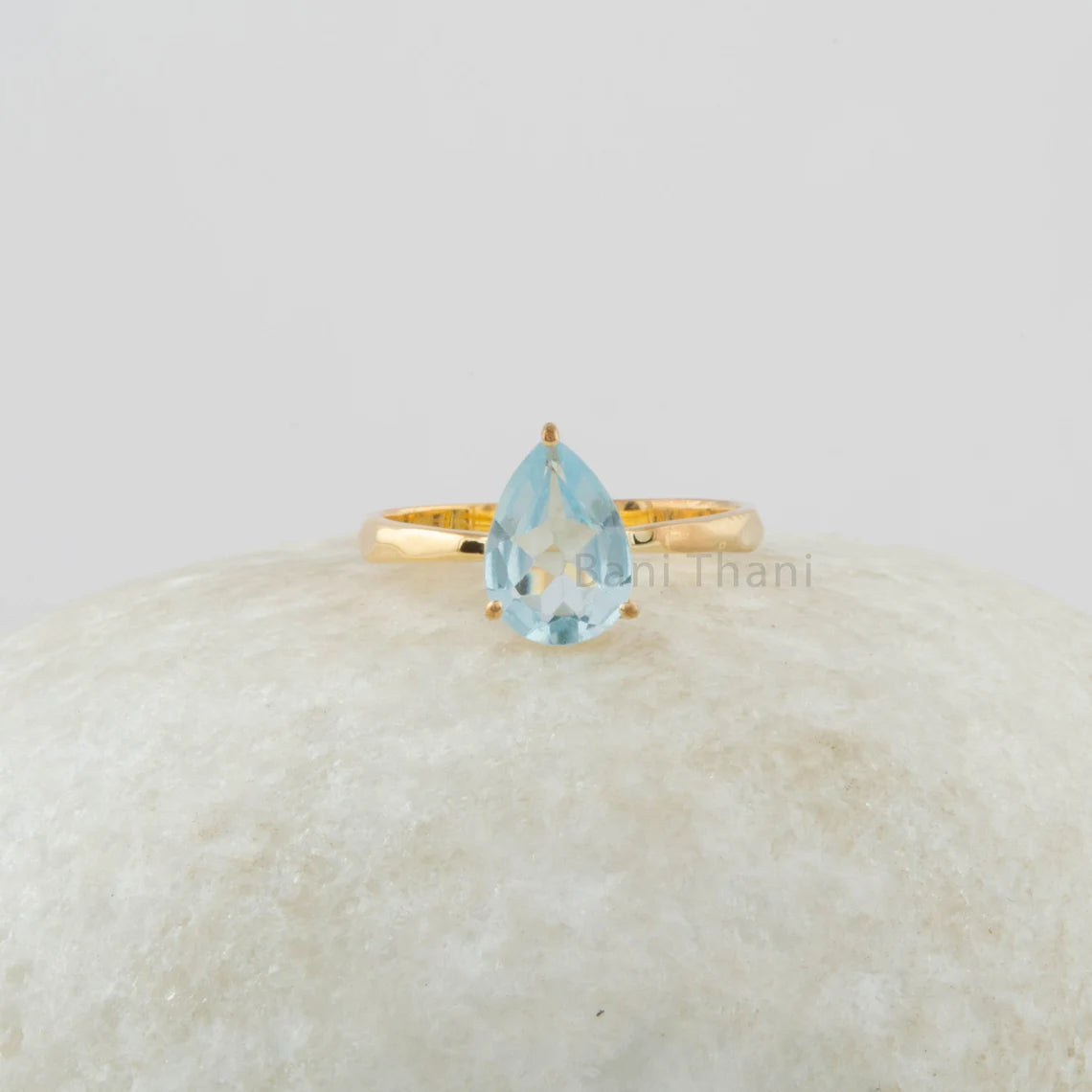 Aquamarine Ring, Solid Silver 925 Ring, Gold Plated Engagement Ring, Pear Aqua Gemstone Ring, Custom Handmade Jewelry, Promise Ring for Mom