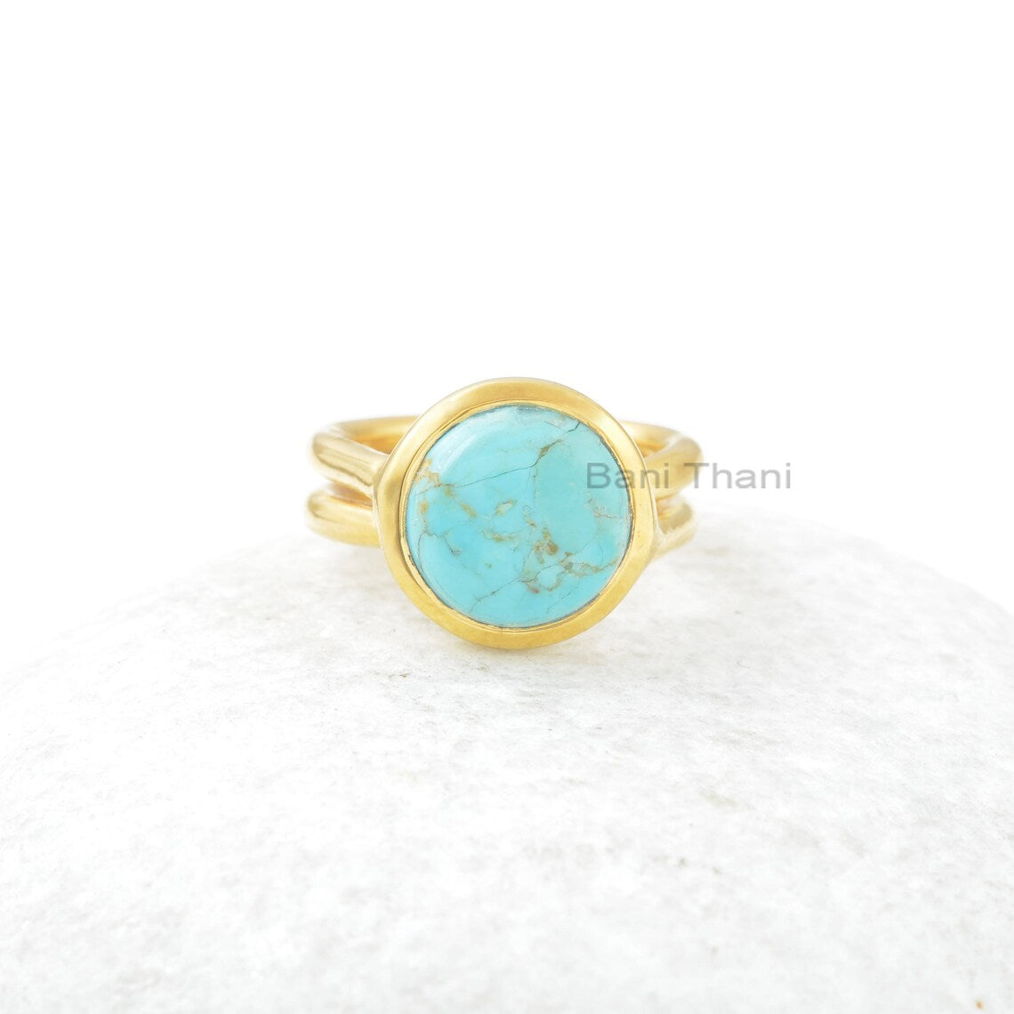 Arizona Turquoise Gemstone Ring - 12mm Round Ring - Gold Plated Ring - Solid Silver Ring - Anniversary Gift - Rings for Women - Promise Ring