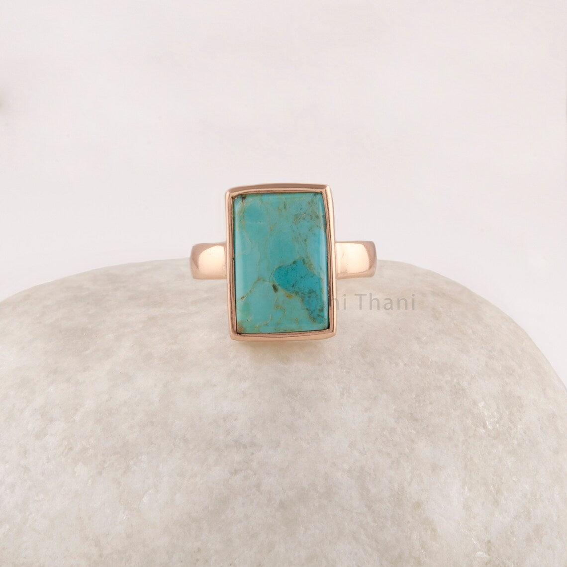Arizona Turquoise Rectangle 10x15mm Gemstone Ring - Gold Plated Sterling Silver Ring - A Precious Gift for Valentine's Day - Halloween Gift
