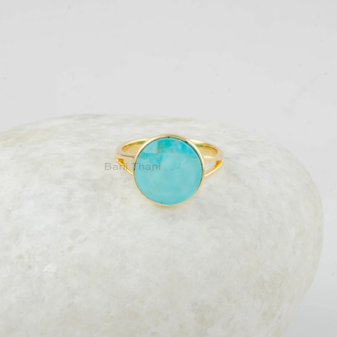 Turquoise Doublet Ring - Round Ring - Jewelry for Womens - Handmade Ring - 925 Solid Silver - Gold Plated - Birthday Gift - 12mm