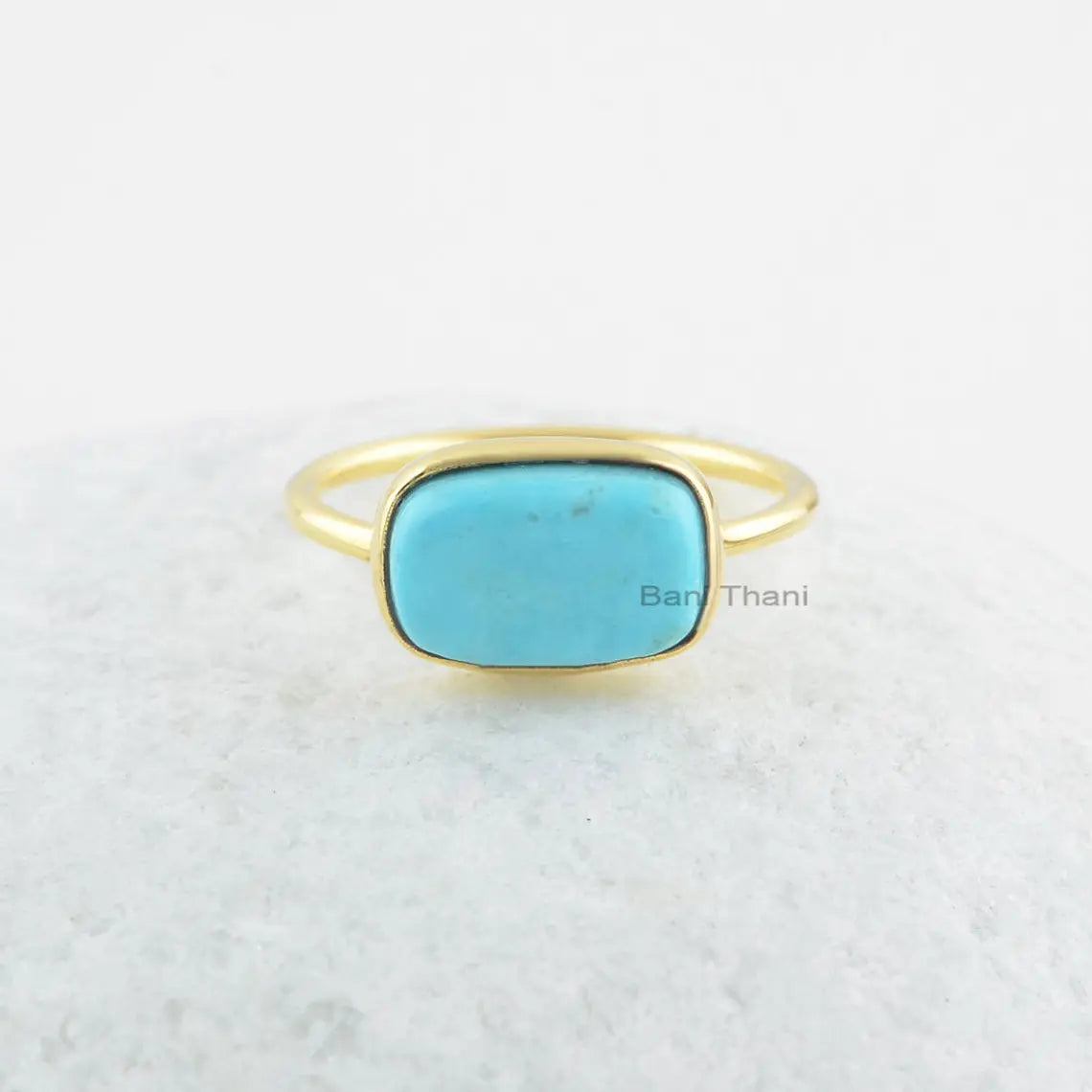 Arizona Turquoise Ring-Arizona Turquoise 8x12mm Cushion Sterling Silver Ring-Gold Plated Ring-Gemstone Ring-Engagement Gift-Gift For Her