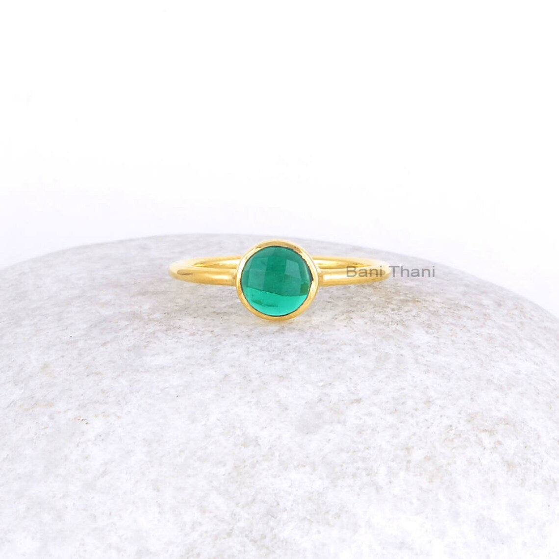 Beautiful Quartz Ring-Emerald Quartz Round Faceted 6mm Gemstone Ring, Gold Plated 925 Sterling Silver Jewelry Ring-Minimalist Stacking Ring