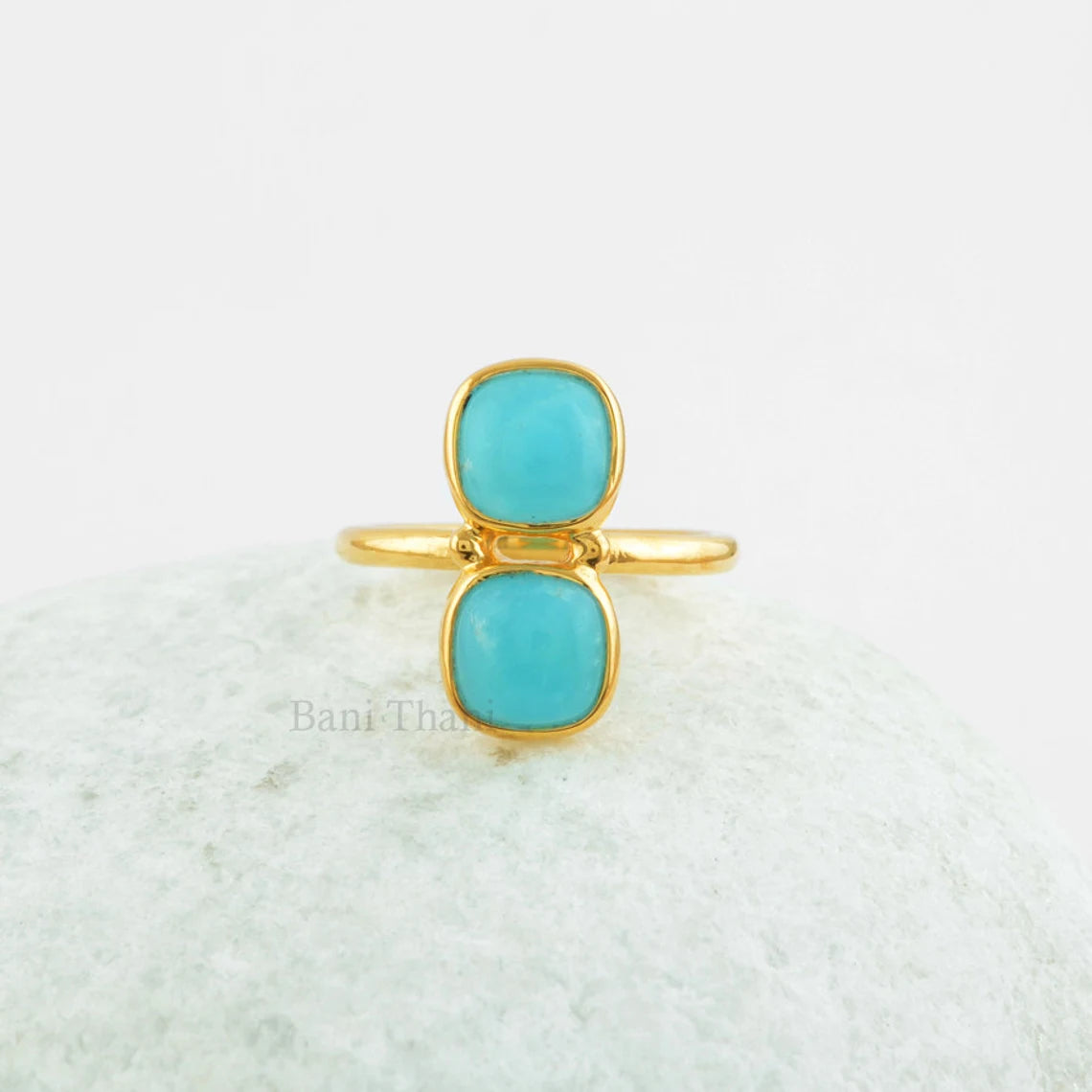 Beautiful Smithsonite Double Gemstone Ring - Gold Plated Handmade Ring - 925 Sterling Silver Ring - Delicate Ring - Bridesmaid Gift Ring