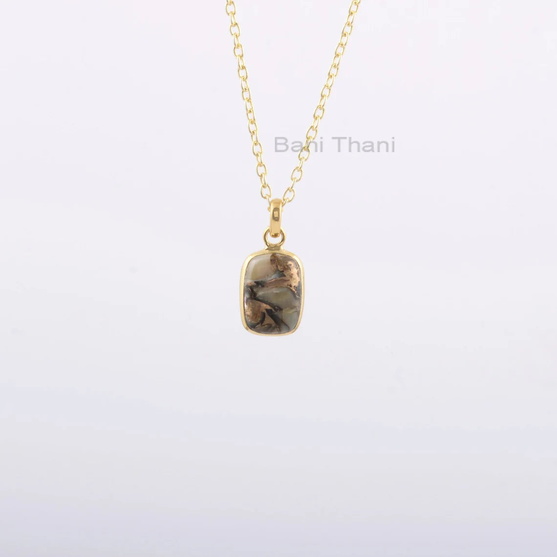Black Copper Shell Necklace, Cushion Shape Gemstone Handmade Necklace, 18k Gold Plated Sterling Silver Necklace, Anniversary Gift For Wife