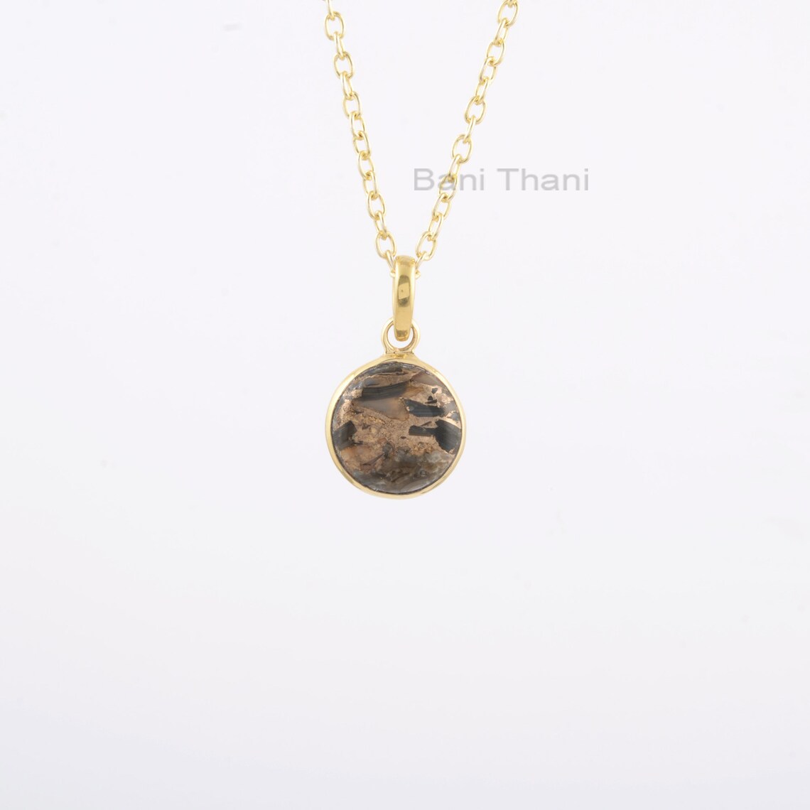Black Copper Shell Necklace - Gemstone Pendant Necklace - 925 Sterling Silver - 12mm Round - Jewelry For Teacher - Gift For Young Ladies