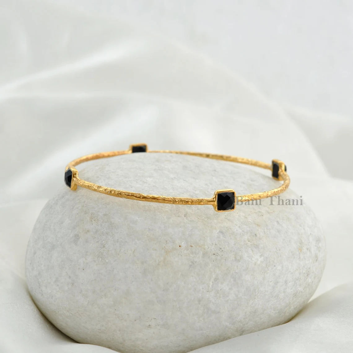 Black Onyx Textured Bangle - Gemstone Bracelet - 925 Sterling Silver - 5mm Faceted Square - Jewelry For Teacher - Gift For Young Ladies