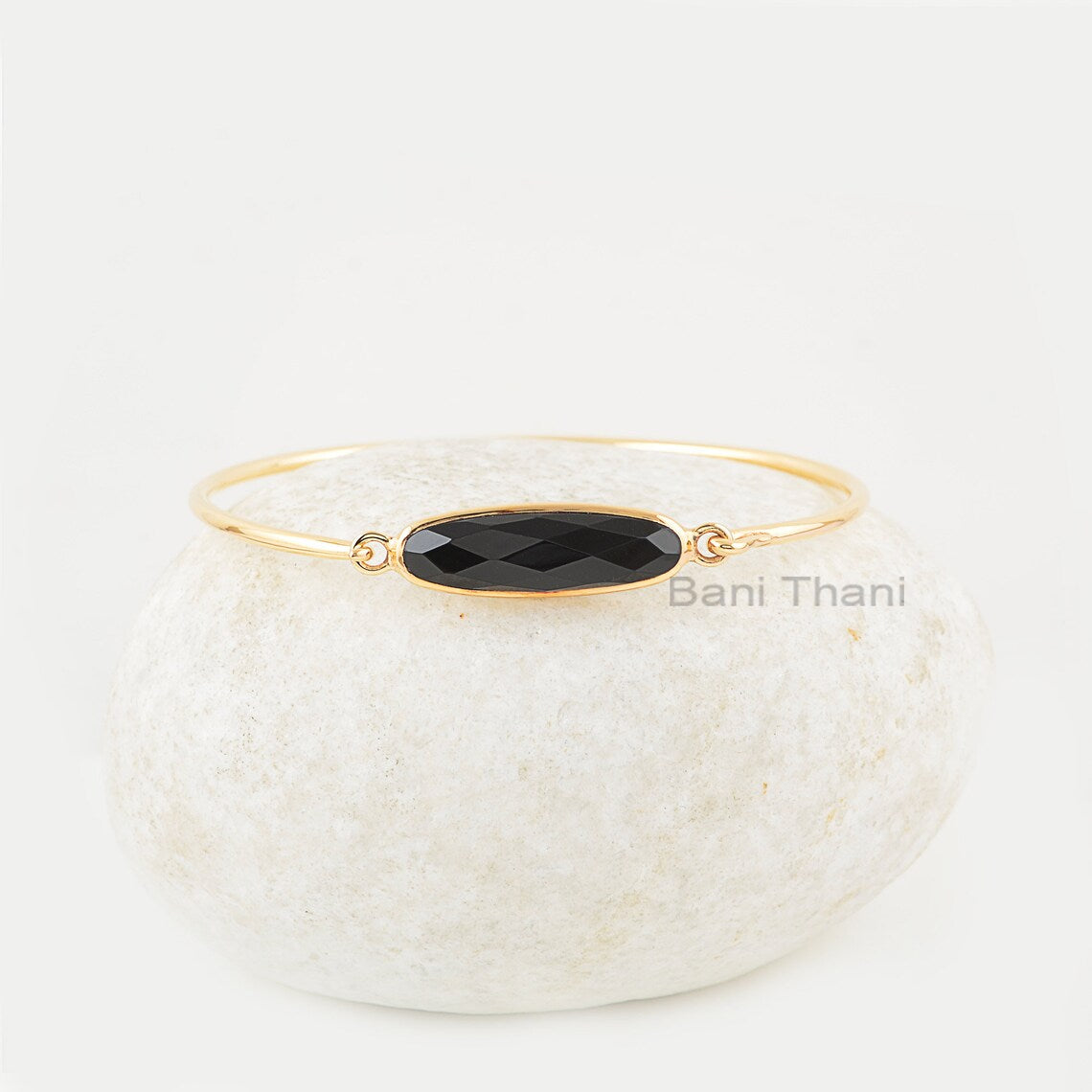 Black Onyx Bangles - Gold Plated Bracelet - Solid Silver - 7x25mm - Natural Stone Jewelry - Jewelry For New Beginning - Gift For Bridesmaid
