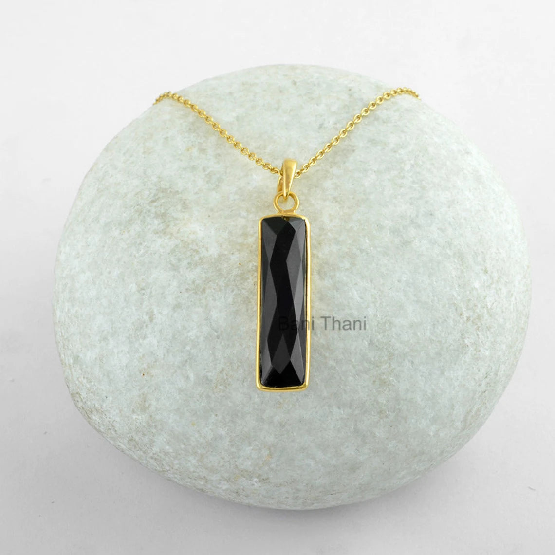 Black Onyx Necklace - 925 Silver - 7x30mm Baguette - Gold Plated Pendant Necklace - Custom Jewelry - Gift For Loved One - Jewelry For Prom