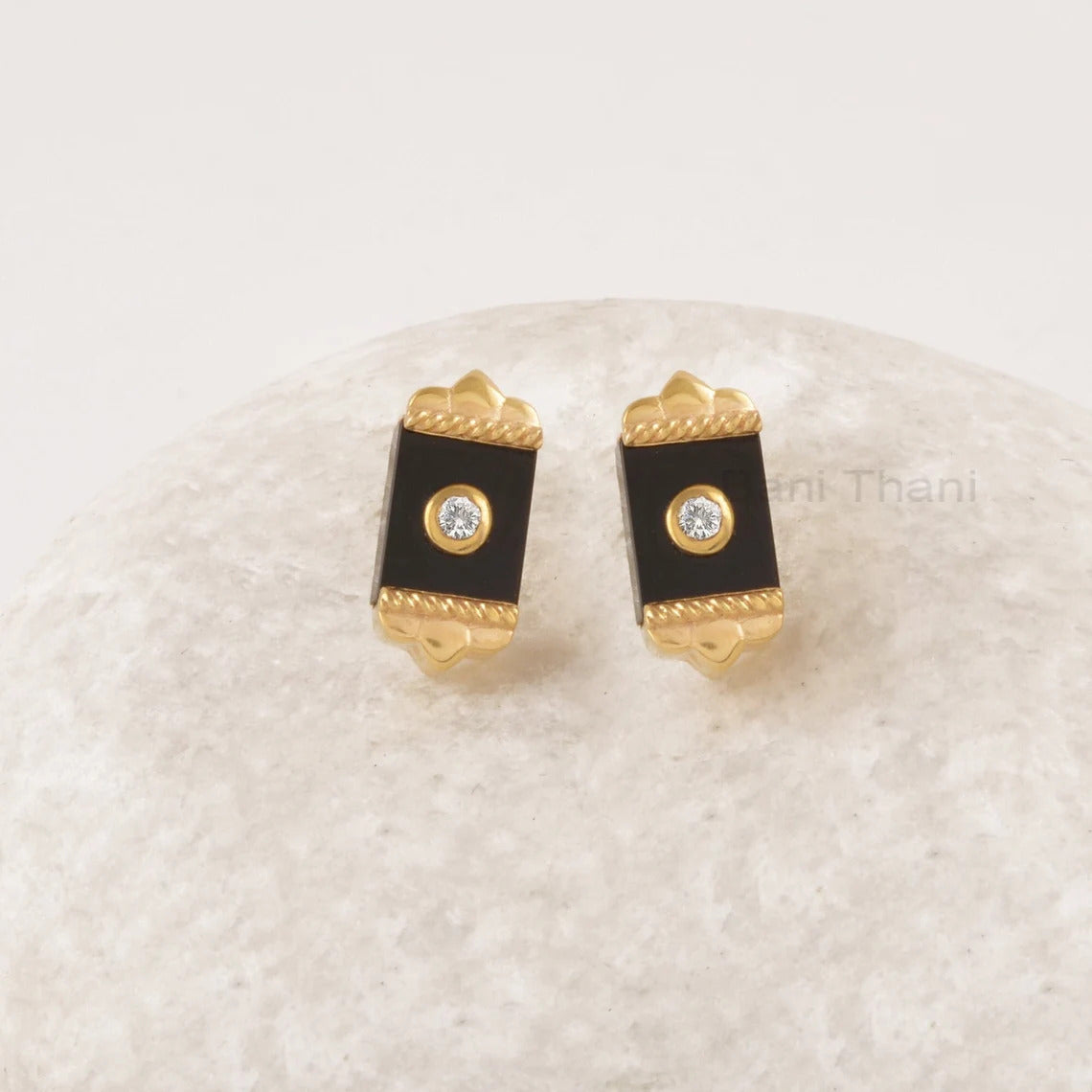 Black Onyx Stud Earrings - 925 Sterling Silver Earring - Art Deco Jewelry - Dainty Gold Plated Stud - 9x7mm Rectangle Earring - Gift For Her