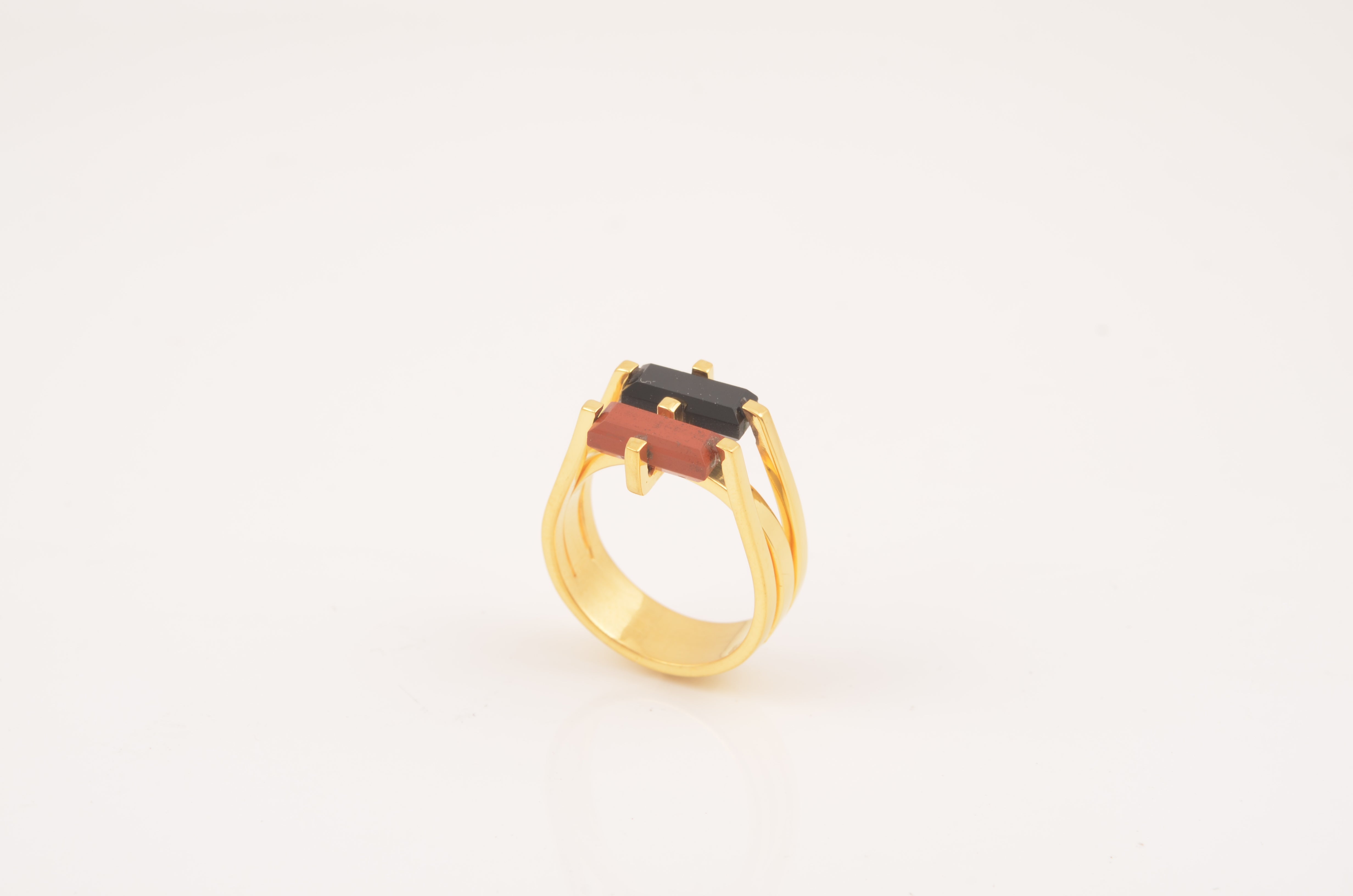 Red Jasper Ring, Black Onyx Ring, Black Red Gemstone Silver Ring, 925 Sterling Silver Ring, 18k Gold Plated Ring, Multi Stone Unique Ring