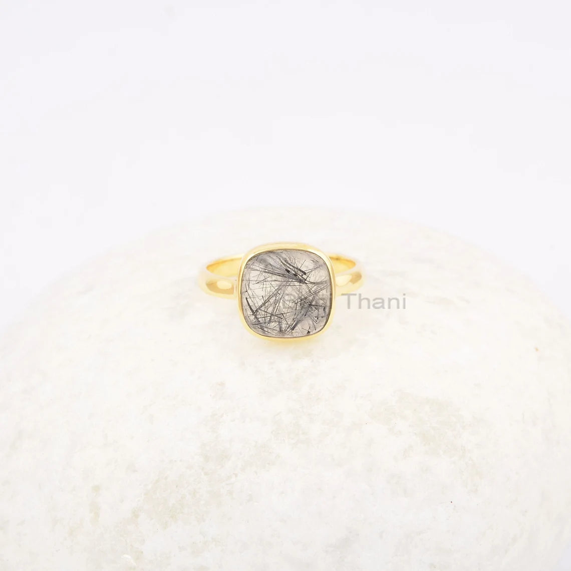 Black Rutile Quartz Ring - Sterling Silver Ring - 10mm Gemstone Jewelry - Gold Vermeil - Gift for Lady - Ring for Girls - Handmade Jewelry