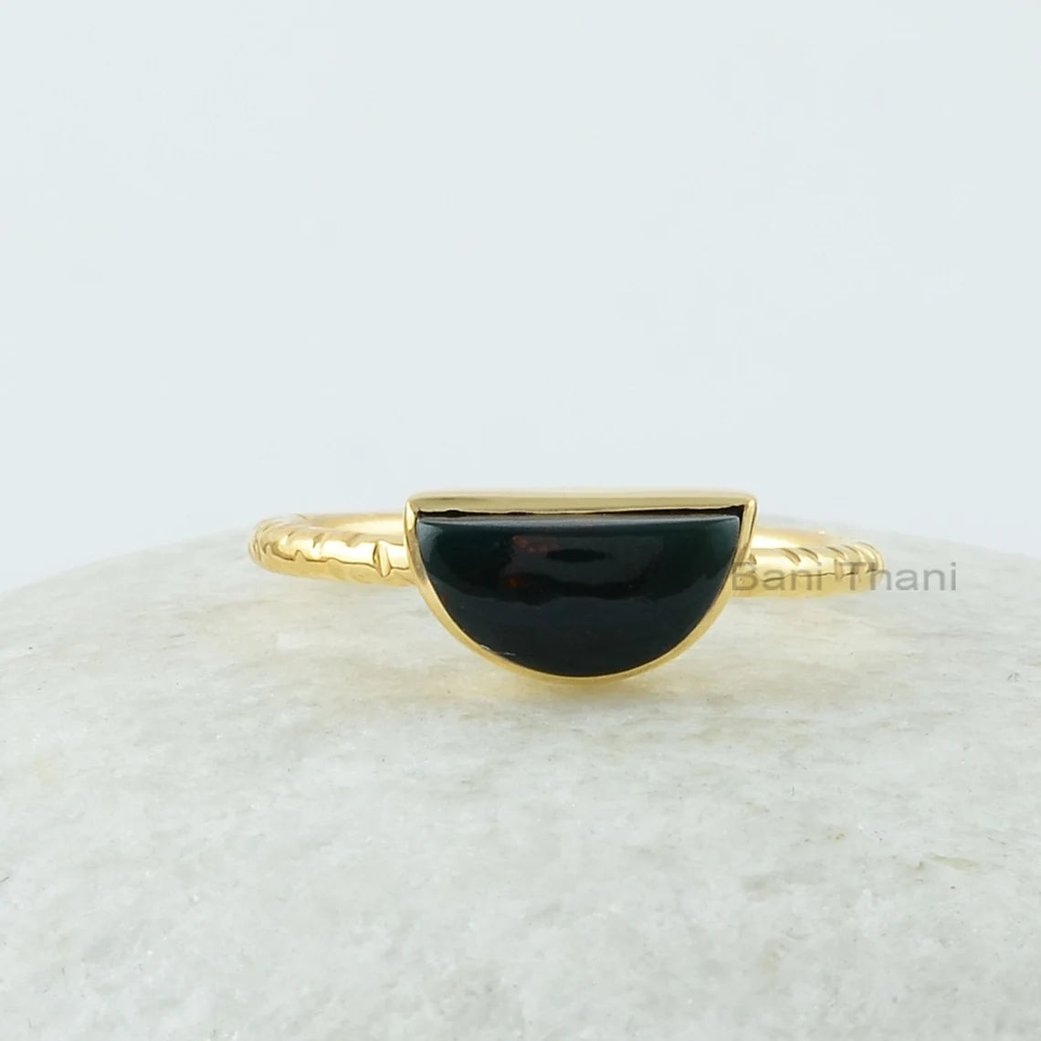 Bloodstone Ring - Sterling Silver - Bloodstone Half Moon Gemstone Ring- Gold Plated - Fashion Jewelry - Gift For Student - Jewelry For Lover