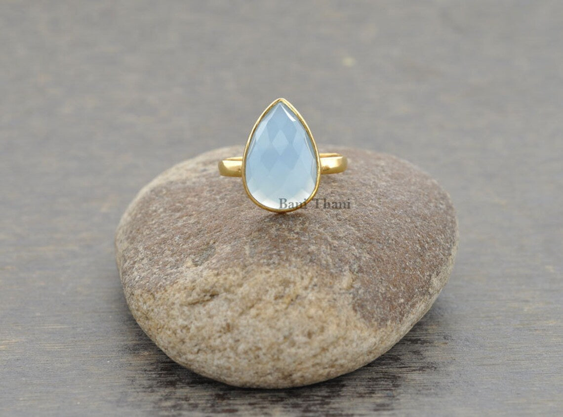Blue Chalcedony Ring - Gold Plated Ring - 925 Sterling Silver - 10x14mm Pear - High Quality Jewelry - Gift For Her - Jewelry For Healing