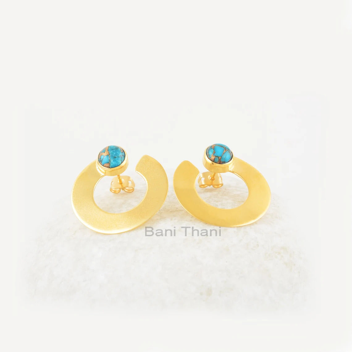 Blue Copper Turquoise Stud Earrings - Solid Silver - Gold Plated Studs - 7x7mm Round - Custom Jewelry - Gift For Loved One -Jewelry For Prom