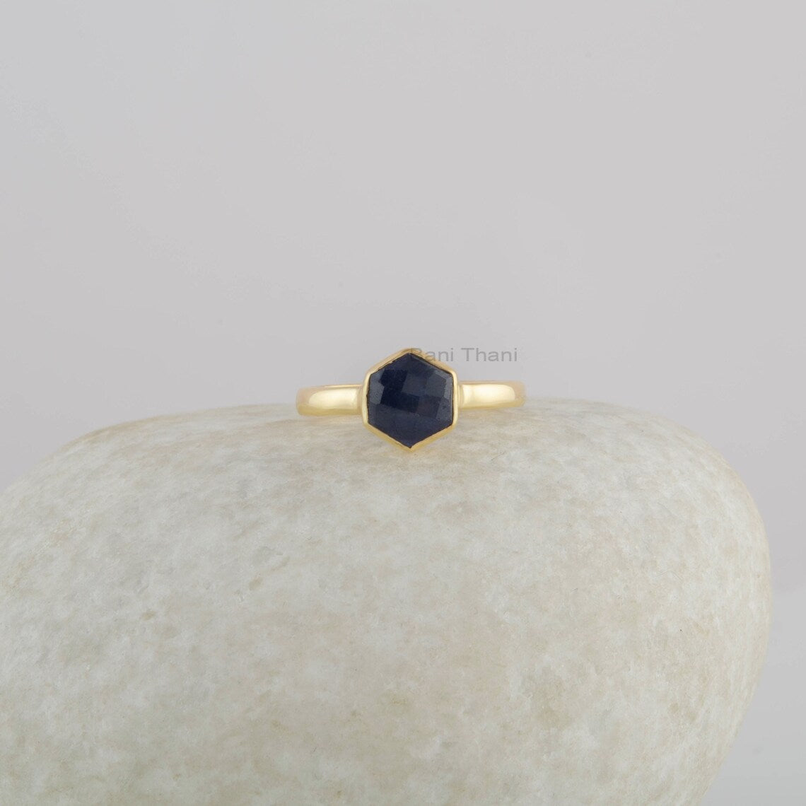 Hexagon Gemstone Silver Ring - Blue Sapphire Handmade Ring - Christmas Gift Ring for Her - Jewelry for Bridesmaid - Birthday Gift Ring