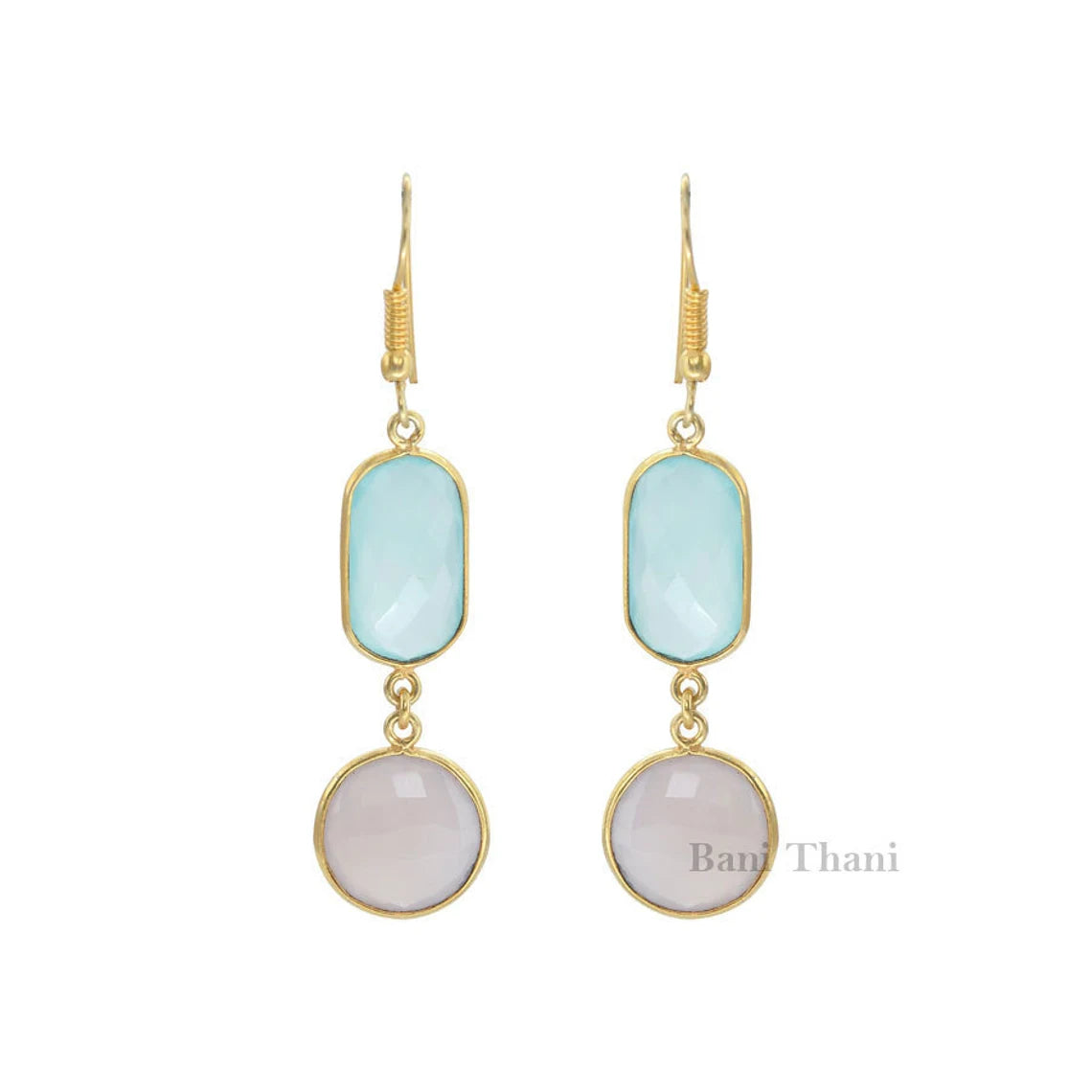 Chalcedony Round, Oval Gemstone Drop Earrings, Gold Plated 925 Sterling Silver Earrings, Vintage Earring, Anniversary Gift Earring Jewelry