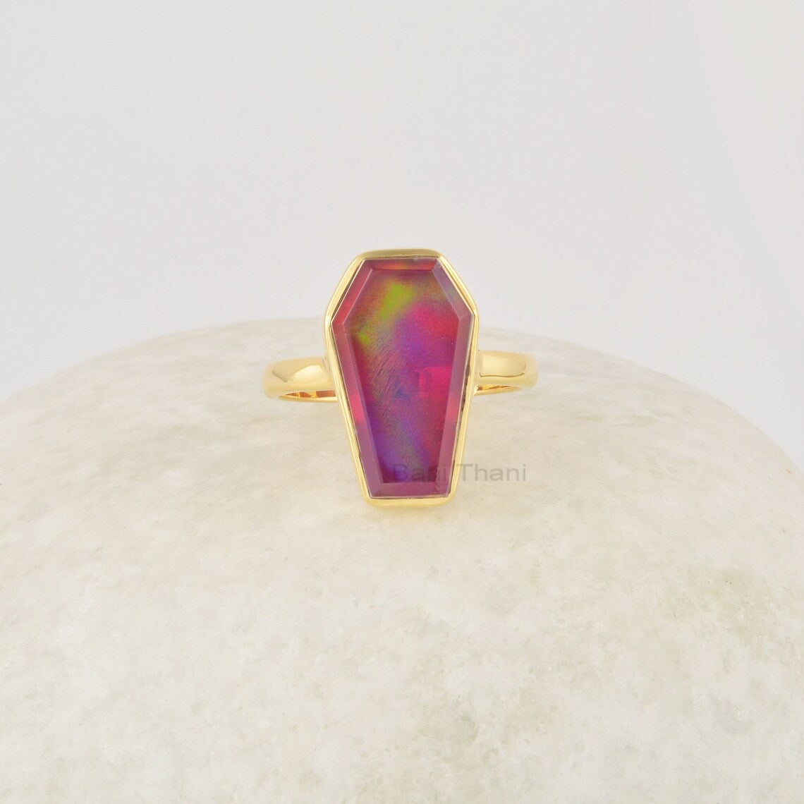 Coffin Ring, Gothic Red Coffin Ring, Vampire Ring, Aurora Opal Ring, Coffin Gemstone Ring, Solid Silver Gold Plated Ring For Gothic Gift