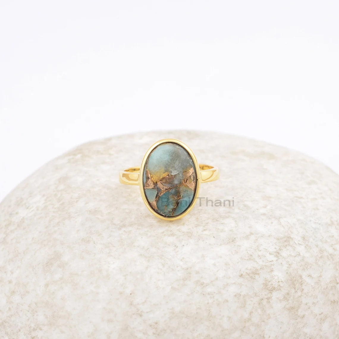 Copper Amazonite 10x14mm Oval Shape Gemstone Ring, 925 Sterling Silver Ring, 18k Gold Plated Handmade Ring, Valentine's Day Gift Ring