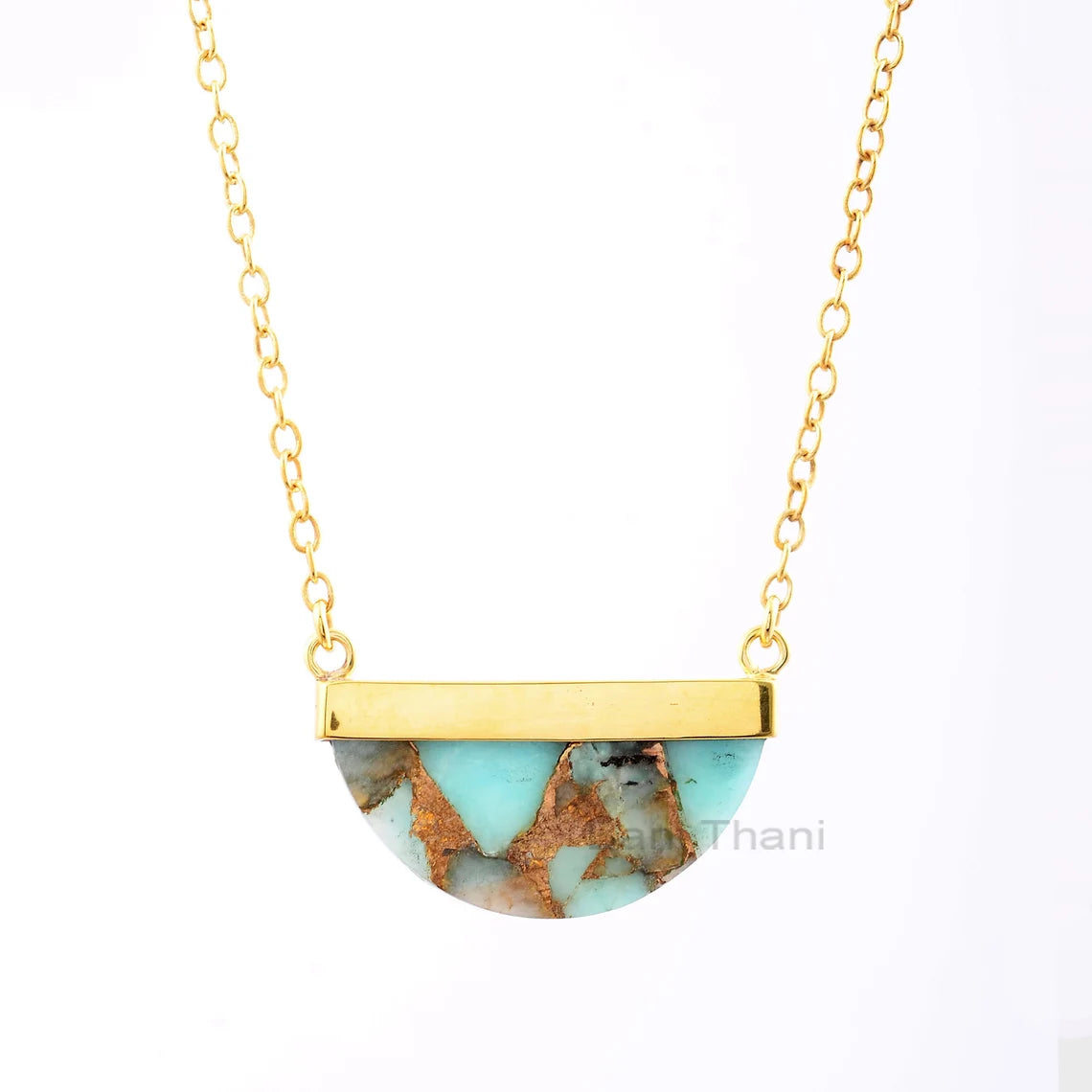 Copper Amazonite Necklace - 925 Sterling Silver - Gold Plated Pendant Necklace - 13x25mm Halfmoon - Gift For Girls - Jewelry for Date