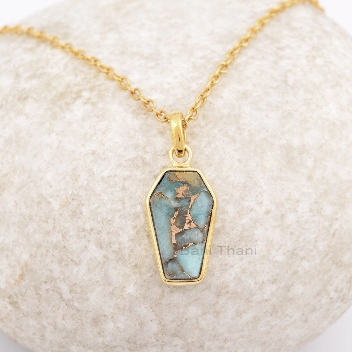 Copper Amazonite Necklace - Handmade Necklace - 925 Silver - 10x17mm Coffin -Matching Jewelry - Jewelry For The Bride - Gift For Young Girl