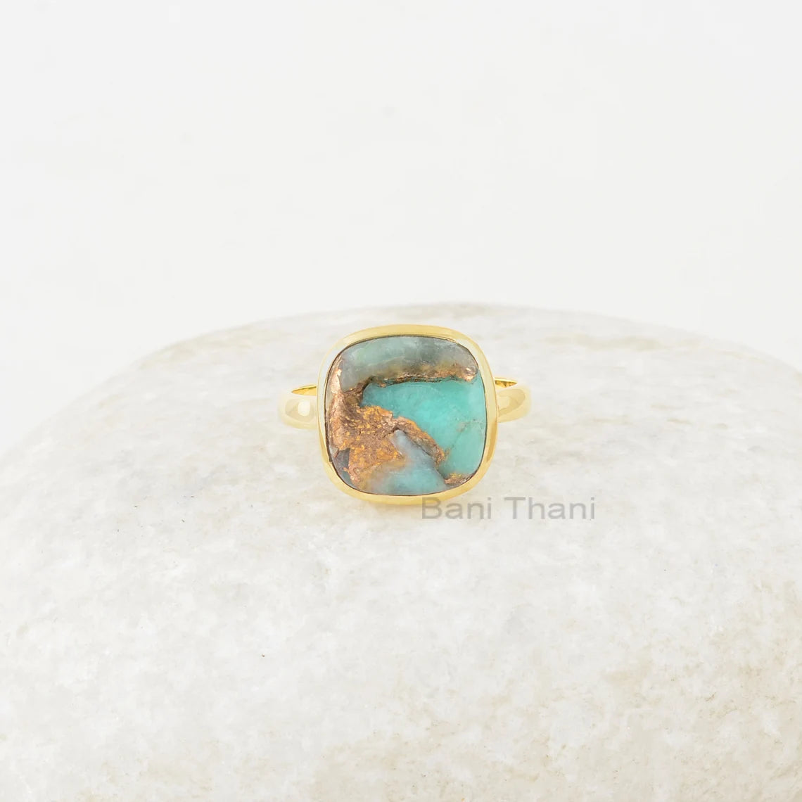 Copper Amazonite Ring - Sterling Silver - 12mm Gemstone Ring - Amazonite Cushion - Designer Jewelry - Jewelry For Her - Gift For Family