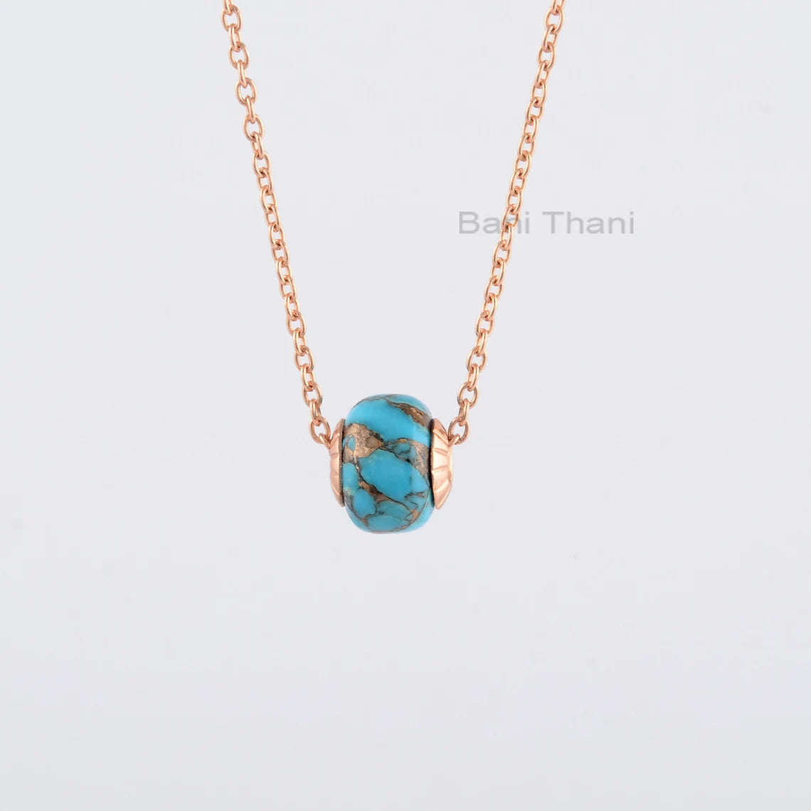 Copper Turquoise Necklace - Gemstone Pendant Necklace - 925 Sterling Silver - 10x14mm Pandora Bead - Jewelry For Beach - Gift For Women