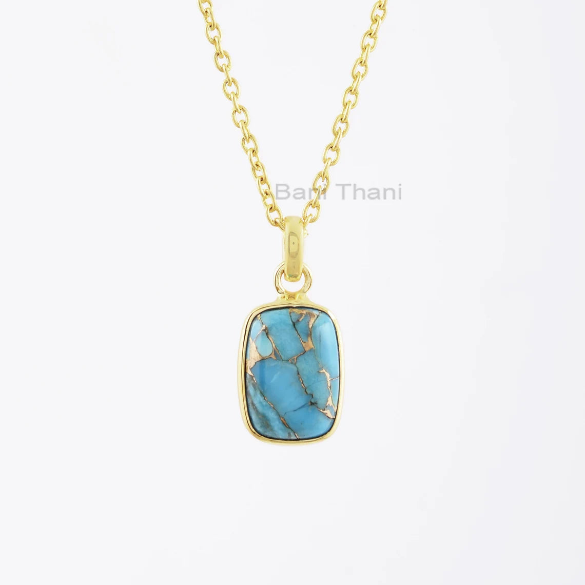 Copper Turquoise Cushion Necklace - Gemstone Pendant Necklace - Sterling Silver - Elegant Jewelry - Jewelry For Young Girl - Gift For Friend
