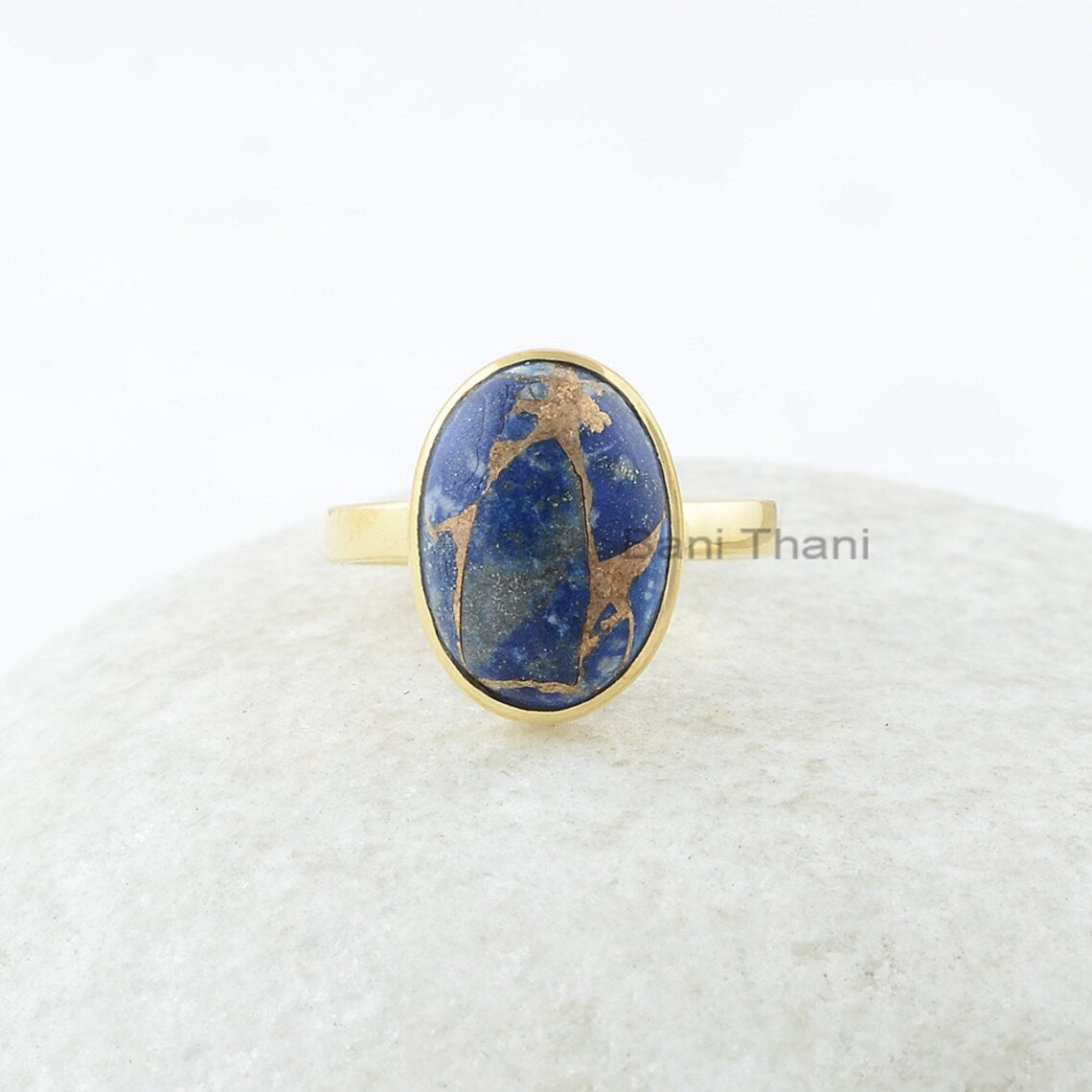 Copper Lapis Ring, Copper Lapis Lazuli 10x14mm Oval Silver Ring, Gemstone Silver Ring, Gold Plated Ring, Lapis Ring, Wedding Gift for Bride