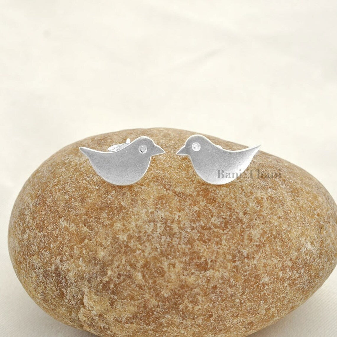 Bird Stud Earrings, Bird Shape Silver Stud Earring, 925 Sterling Silver Earring, Earring Gift for Her, Designer Bird Stud Earrings For Women