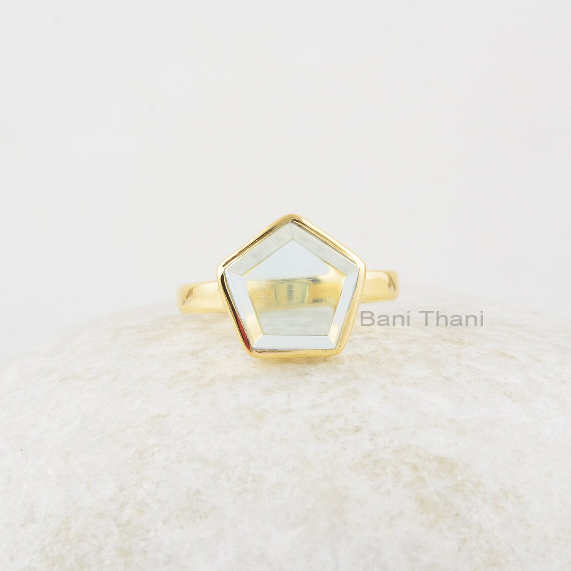 Crystal Quartz Gemstone Silver Ring - 11mm Star Shaped Ring - Gold Plated Ring - 925 Silver Ring - Handmade Jewelry - Womens Gift Jewelry