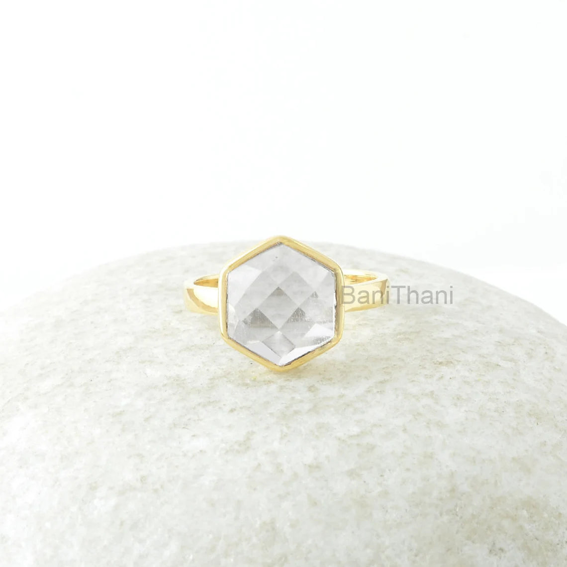 Crystal Quartz Ring - 925 Silver - Handmade Ring - Faceted Hexagon - Gold Plated - Healing Jewelry - Jewelry For Niece - Gift For Ladies