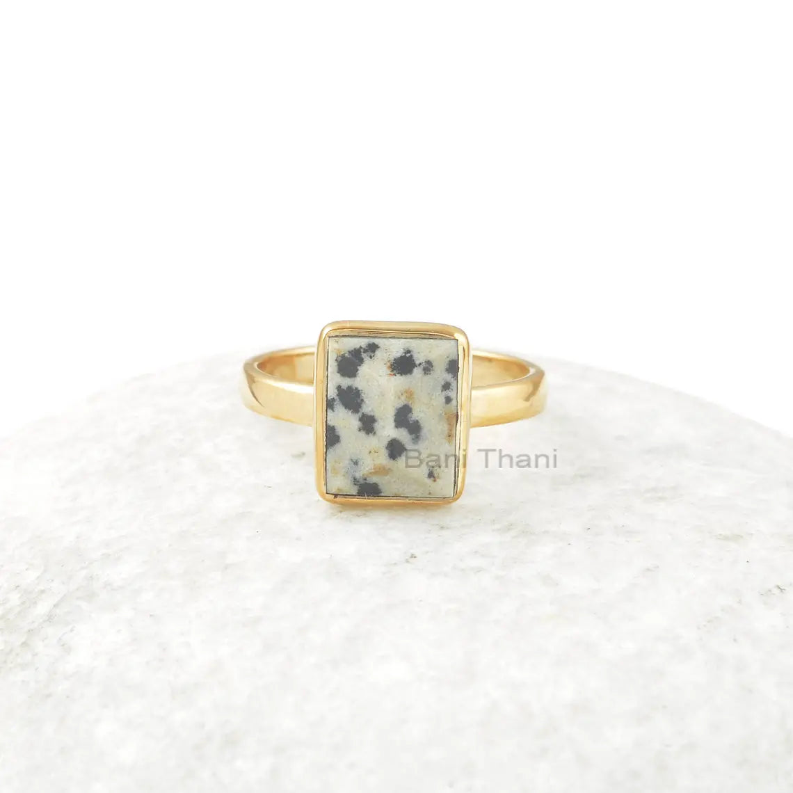 Dalmatian Jasper Ring - Pure Silver - 9x11mm Jasper Rectangle Stone - Handmade Ring - Modern Jewelry - Gift for Womens - Jewelry for Writer